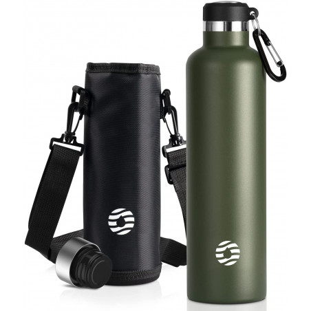 Gourde en acier inoxydable, double paroi, conserve le chaud et le froid.